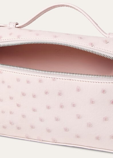 حقيبة "Extra Pocket" الأيقونية، حقيبة لورو بيانا المثالية. يمكن حمل حقيبة "Extra Pocket"، العصرية والأنيقة ومتنوعة الاستخدامات دون عناء، في اليد أو حول الجسم بفضل الحزام القابل للفصل. وهي مصنوعة من جلد النعام الفاخر، وتتميَّز بملمسها الرقيق غير المنتظم ولمستها النهائية الفريدة والمتقنة التي تعزز اللمعان الطبيعي وثراء الألوان.